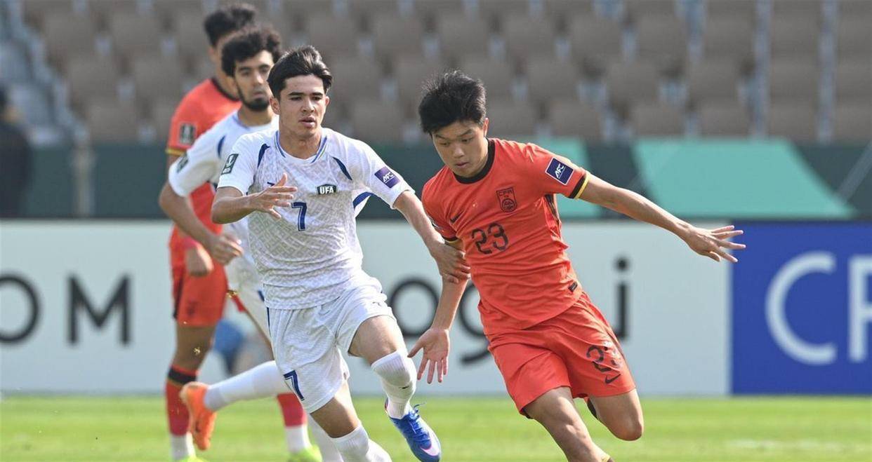 中国队的比赛是从头到尾的防守战。 面对乌兹别克斯坦队成熟的传控体系和凌厉的远射,中国队开场后就陷入被动。 整个上半场,对手控制了绝大部分球权,并接连通过外围远射威胁中国队球门。 中国队防线承受着巨大压力,但队员们通过积极的跑动和相互补位,没有让对手获得绝对的单刀机会。