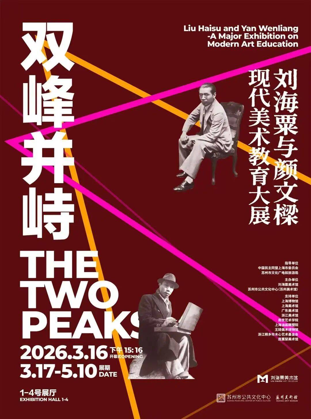 “双峰并峙——刘海粟与颜文樑现代美术教育大展”3月17日起免费向公众开放。展览汇集绘画作品及珍贵文献近200件,将持续至5月10日。