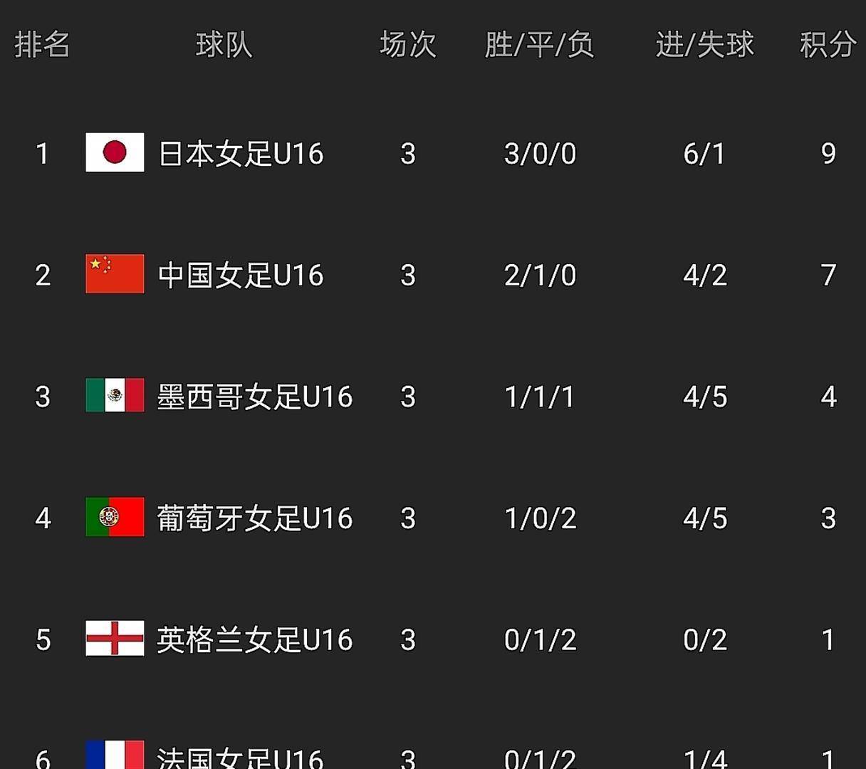 小组赛的进程清晰地勾勒出了两支决赛队伍的状态与轨迹。 日本U16女足展现出了卫冕冠军的强大实力和稳定性。 她们在首场比赛中就以3比0的比分干净利落地击败了墨西哥队,全程掌控比赛节奏,让对手难以组织起有效攻势。 第二场比赛,她们面对英格兰队,凭借稳健的防守和高效的进攻,以1比0取胜。 最后一场小组赛,日本队遭遇了葡萄牙队的顽强抵抗,但依然以2比1的比分完成逆转,从而以三战全胜、进6球仅失1球的战绩,毫无悬念地锁定了小组头名。 这支球队在近十场各项赛事中取得了9胜1平的不败战绩,胜率高达90%。