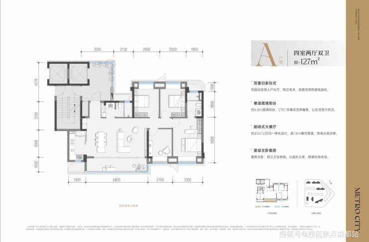 坐落于成都金牛区,与地铁2号线金周路站实现无缝对接。该项目总占地面积约49.5亩,规划建设9栋住宅以及1栋商业综合体。住宅产品均为16 - 17层的纯板式小高层,主力户型是建面约127 - 141㎡的纯粹四居室,每户都配备约6.8 - 9米的宽境阳台,能够带来270°的环幕视觉感受。项目的精装交付标准包含地暖、中央空调、新风系统这三大核心配置,绿地率高达35%。在建筑密度、层高设计、绿地规模以及无障碍设施等关键指标方面,均超出国家最新标准,致力于为家庭打造全方位的舒适居住环境。