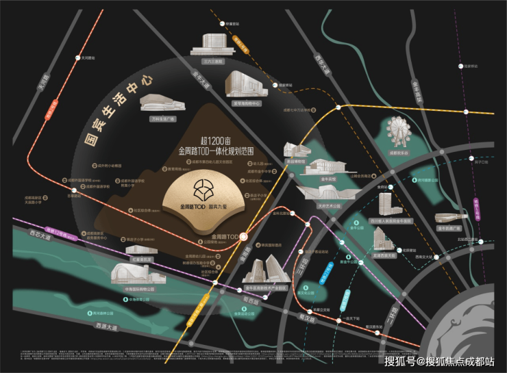 商业资源-项目自身配备约5000㎡的社区商业,与金禧二路综合体、金周路综合体形成互补的商业网络。在2公里范围内有多个大型购物中心,能充分满足日常生活消费需求。教育资源-项目北侧与茶店子小学(金樽分校)仅一街之隔,在2.5公里辐射范围内汇聚了机关二幼、成都四幼、茶店子小学(金禧分校/国宾校区)、石笋街小学(盛达校区)、成都七中金牛中学、成都七中万达教育集团金牛中学、成都外国语学校及附小等多所优质学府(温馨提示:学校信息仅供参考,不作为入学承诺依据)。